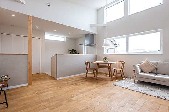 「カフェみたいなお家に住みたい!」「ナチュラルテイストが好き!」など。家づくりのご希望を何でもお聞かせください。無垢の床材・自然素材クロスなどの素材にこだわり、快適で気持ちの良い空間をご提案します。